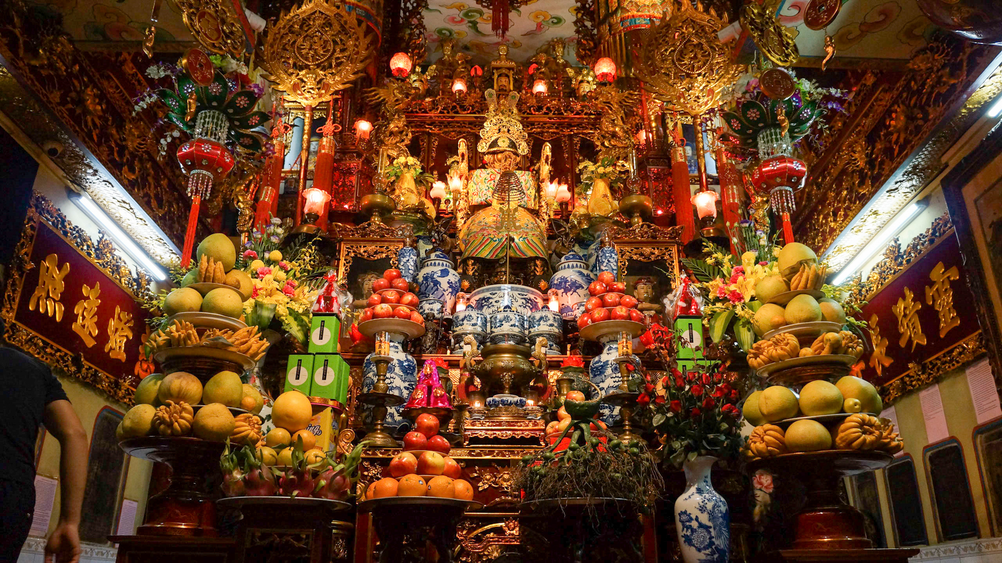 Ça et là se cachent des temples, pas toujours clairement visibles depuis la rue. Les autels richement décorés croulent sous le poids des offrandes de fruits frais, snacks, conserves ou mêmes serviettes.