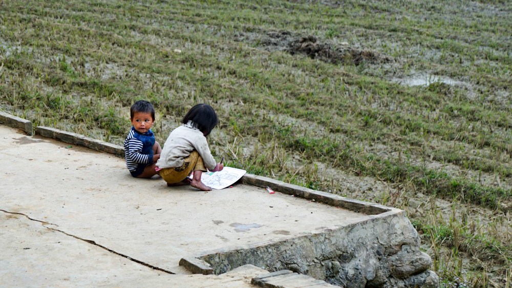 Nous atteignons en milieu d’après-midi, alors qu’il se met à pleuvoir dans la vallée, la maison de May Sinh où nous passerons la nuit. Bercés par le bruit de la pluie sur la toiture, et le grognement des cochons qui ont trouvé refuge sous la chambre, nous sombrons dans un sommeil réparateur. Seule l’agitation de la préparation du dîner dans la maison nous sort de notre léthargie.
