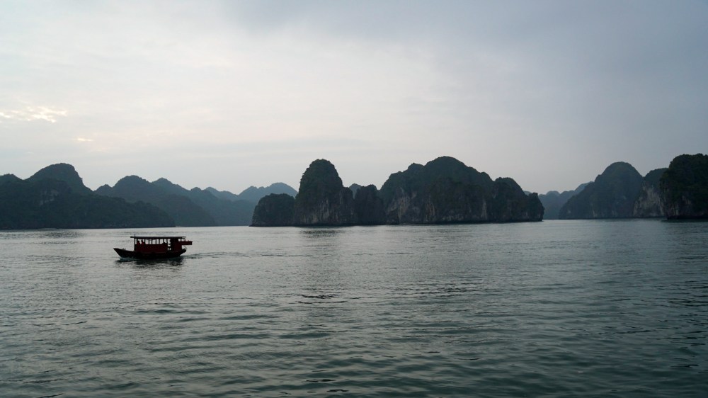 Le soleil se lève à peine sur la baie de Bai Tu où nous avons passé la nuit quand notre bateau prend le cap de l’île de Ti Top. Malgré les nombreux bateaux qui mouillent à proximité, nous sommes les premiers à débarquer sur l’île et à entreprendre de gravir le bloc de calcaire au sommet duquel s’offre une vue panoramique. La montée, bien qu’au petit matin, se révèle mettre le souffle à l’épreuve. Heureusement, il est possible de se baigner au pied de la montagne pour se rafraîchir après avoir profité d’une si belle vue.