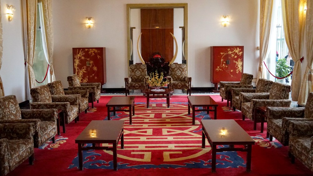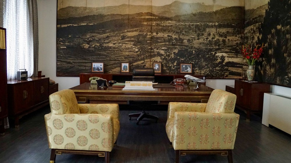 Historiquement, ce bâtiment fut construit et achevé en 1873 par les français pour le roi du Cambodge. À l’issue des accords de Genève, il devint la résidence officielle du président 2 ans plus tard en 1956. Toutefois, ce n’est qu’après avoir été lourdement endommagé en 1962 par le bombardement par deux lieutenants transfuges de l’armée sud vietnamienne qu’il fut rasé et pris sa forme actuelle. Il est le fruit de l’architecte vietnamien Ngo Dinh Diem, détenteur du prix de Rome et fut achevé en 1966.